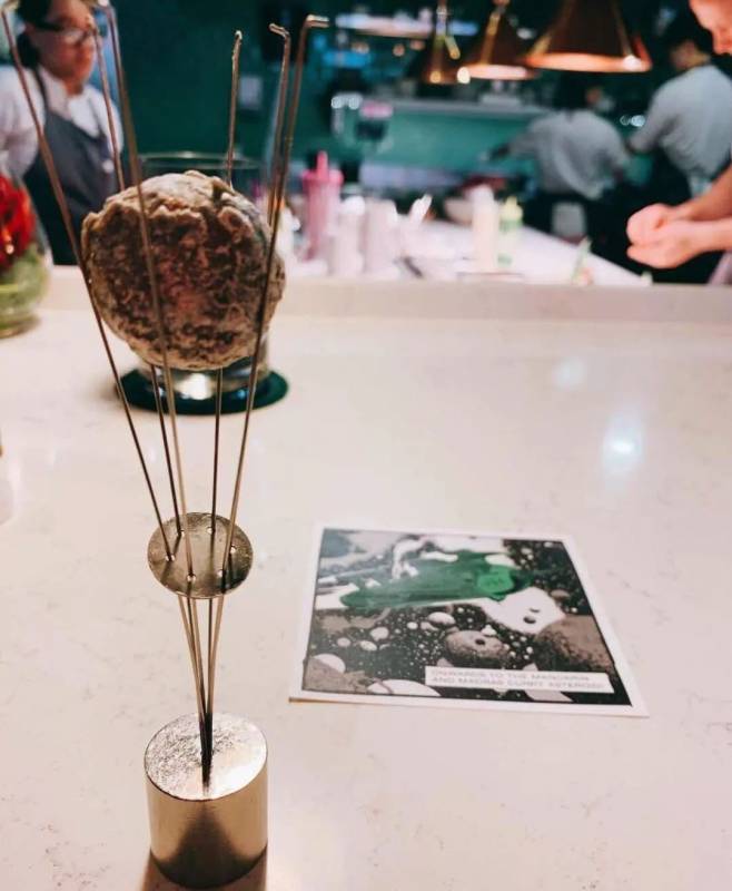 侍者顽皮的提醒你,吃的时候要记得闻一下图片中那绿色的航天飞机哦。啊?!