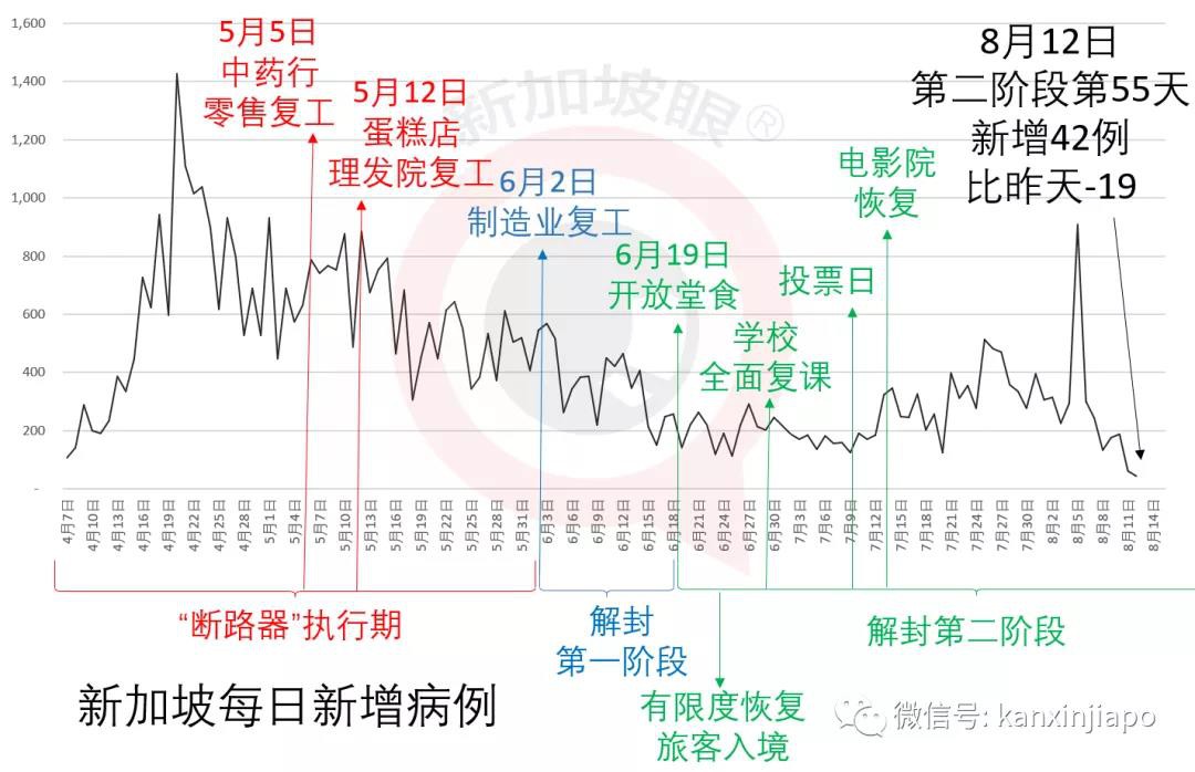 8月12日,新加坡新增确诊42例,累计55395例。新增病例当中,含境外输入11起、社区病例1起,是新加坡公民。卫生部将在今晚公布其他详情。