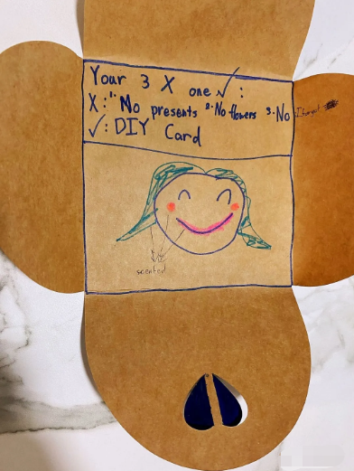 您的三不要一要:一不要礼物、二不要花、三不要什么我忘了,你要的自制贺卡。