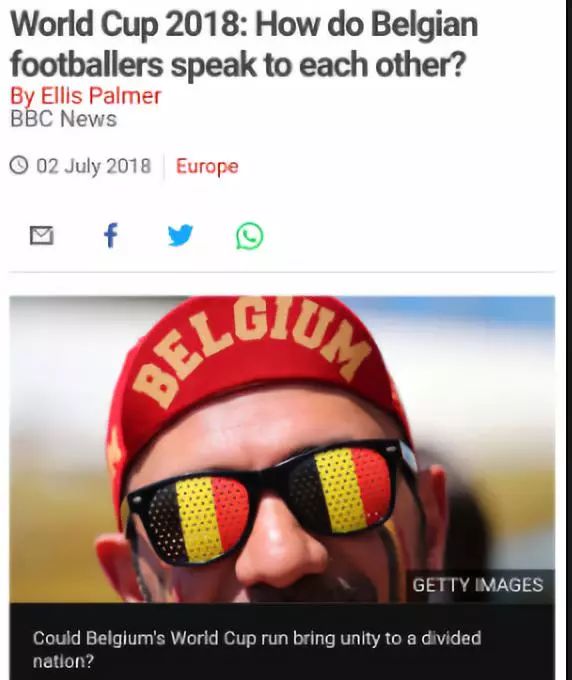 比利时队的球员也很神奇,因为这个国家有多个语言区,北部荷兰语,南部法语,东南部一小撮说德语。同一个国家,同一个球队,大家各自听不懂。因为这事儿,还登上了外媒头条。