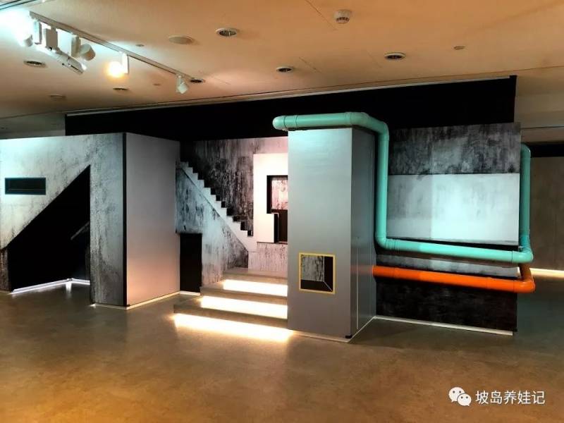 里面主色调背景黑和灰,搭配鲜艳的彩色管道,棱角分明的形状,立体感的冲击也非常强烈。
