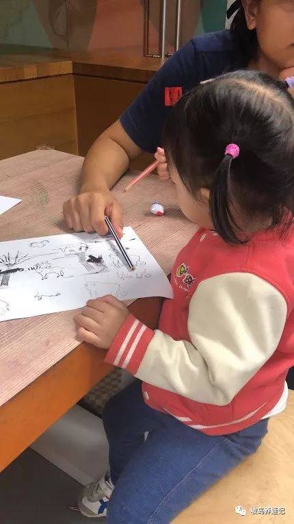 隔壁另一个艺术厅,小朋友们围坐着在制作自己的手工艺品。