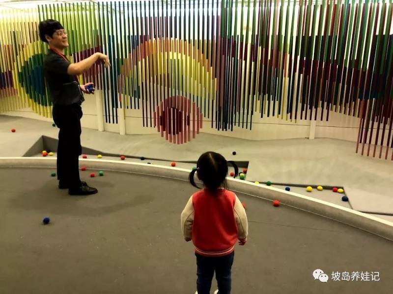 只要拿起地上的小棉球,扔在彩色管上,它们互相碰撞便会发出不同的乐声。