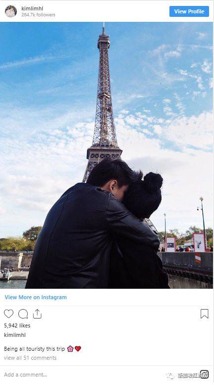 前年11月1日,她又上传一张相信是产后与丈夫重游巴黎的照片,丈夫紧抱着她,两人在巴黎铁塔前相互依偎,但她之后就再也没有晒恩爱。