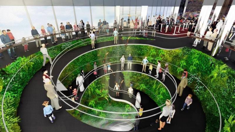带有感官和多媒体显示的景观圆锥主题卷屏,让游客沉浸在一种清新难忘的体验中;蜿蜒的林冠步道将游客带近圆锥体并穿过它们,来到一个露天商场平台上;在阳光雨棚的遮阴和细雾扇的冷却下,游客们从一系列的展览和节目中可以了解到更多关于新加坡的信息;此次体验的最后一站是展示新加坡的设计故事和零售空间的地面画廊,虽然沙漠很热,但游客们整个的旅程还是很舒适愉快的,这都要归功于遮阳、植物的蒸发蒸腾冷却和可将空气冷却至5-10摄氏度的细雾扇的组合。