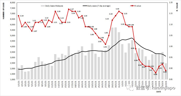 马来西亚2月14日的冠病传染值(R)已降至0.89,即每100个病患会传播给89个。 换言之,病毒传播正在减慢、缩小。 昨天新增的2464起新增病例当中,3起为境外输入病例,2461起为本土病例。 在2461起本土病例中,1705人(69%)是马来西亚公民,756人(31%)是外籍人员。 雪兰莪昨天新增1103起确诊病例,是当天新增病例最多的州属,占当天总数之45%。
