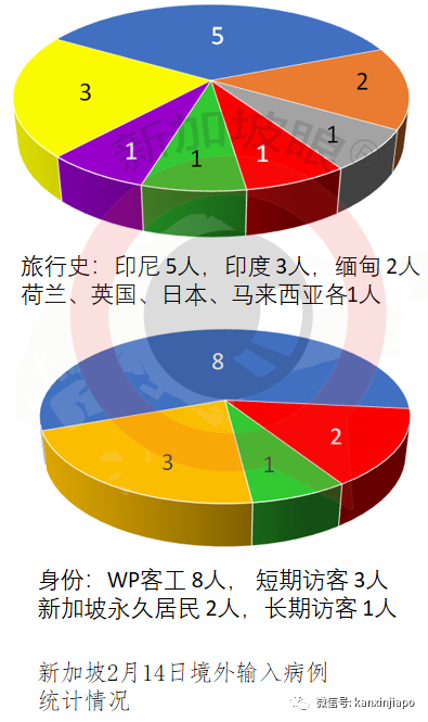 按身份统计: WP客工8人,其中5人为外籍女佣,分别从印尼、日本、缅甸入境。日本籍WP客工是22岁日本籍男子(第60225例),2月13日确诊,无症状。 新加坡永久居民2人,分别从印度、马来西亚入境。 持LTVP长期探访证1人,从英国入境。 持STVP短期探访证3人,其中2人从印度入境,前来探亲;1人从荷兰入境。 从荷兰入境的是28岁荷兰籍男子(第60218例),到新加坡参加一个工作项目。2月10日入境,入境时检测结果为阴性。他之后遵守固定行程,主要出入地点为他工作的一艘船上和住处。当局对此类旅客进行定期检测,他2月12日再次接受检测,结果为阳性,确诊,无症状。隔天,2月13日出现发热症状。他血清抗体检测为阴性,意味着新近感染。从他的旅行史判断,当局将他列为境外输入病例。 本土病例昨天无新增