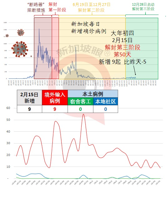 2月15日,新加坡卫生部通报初步统计:今天新增确诊9例,累计59809例。新增病例当中,全是境外输入病例。卫生部将在今晚公布其他详情。