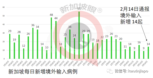 2月14日,新加坡卫生部通报新增14起确诊病例,皆为境外输入病例,本土病例无新增,累计5万9800起。