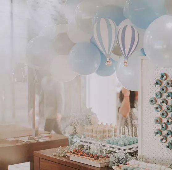 丈夫Roy特别为育婴房准备了热气球新墙纸