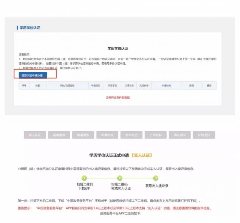 注意:实人认证时它会要求申请者通过下载中国政务服务平台app进行人脸识别完成身份验证,图片如下