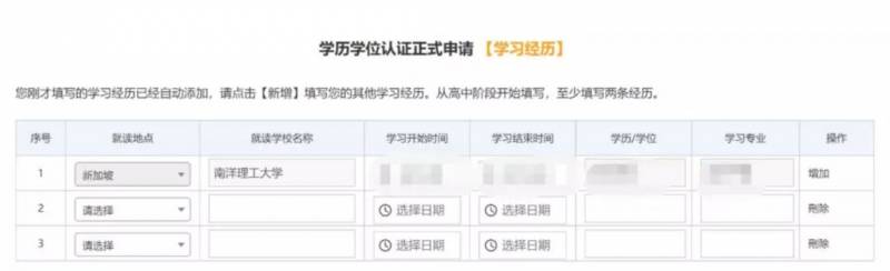 完成点击下一步后,会跳转到学历学位申请信息填写
