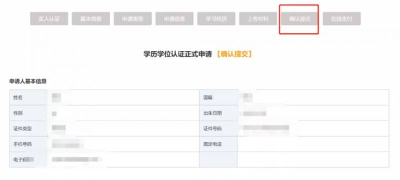 然后就是留学认证的正式提交了!需要认真检查一遍哦。