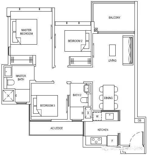 3. 三卧房单位,套内面积81平方米/875平方尺起,价格125.4万新元起。