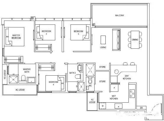 4. 四卧房单位,套内面积112平方米/1211平方尺起,价格171万新元起。
