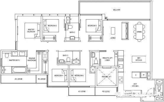 5. 五卧房单位,套内面积150平方米/1620平方尺起,价格245.6万新元起。