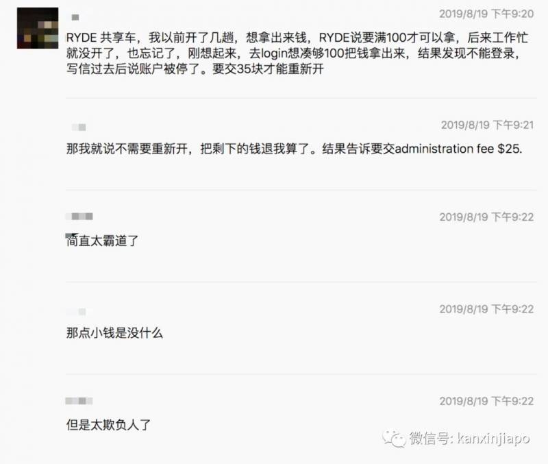 而当网友提出不需要重新激活,只要他们把剩下的钱退回时,RYDE又让他交25新币手续费......