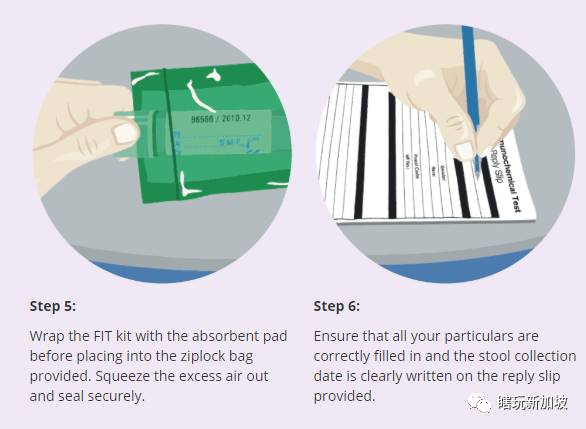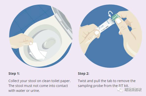 NO. 2 不需要禁食,在家里采集粪便样本,把检验配套邮寄至新加坡防癌协会(免付邮资) FIT(在家采集粪便样本步骤如下)