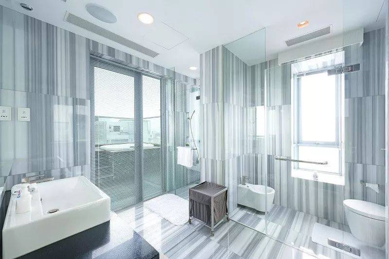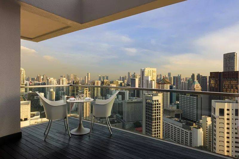 第二就是它的全景天台设计。整套公寓的每一个房间、包括浴室都可以看到风景。