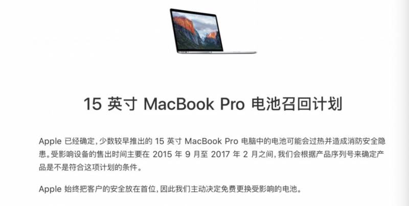 两个月前,苹果公司已宣布召回部分15英寸的MacBook Pro: