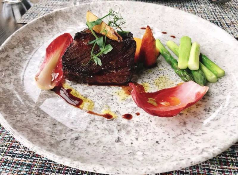 此处插播一下,盘里的芦笋,不是自带的,菜单上明码实价的标注了可添加的配菜,我选了8块一份的澳洲芦笋,还不是为了拍照好看。