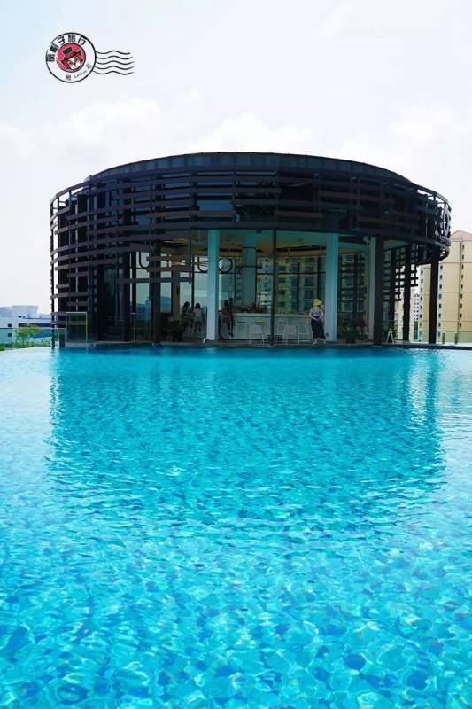 位于酒店7层的露天无边泳池,是新加坡百乐历山酒店的一大招牌。25米长的泳池,清澈碧蓝,像一面蓝色的大镜子,在映照蓝天白云的同时,把对面造型独特的建筑——交织大楼,也一并收入眼中。