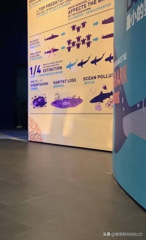 旁边最大的展板,则用大量的数据告诉了我们,鲨鱼的重要性,以及鲨鱼现在面临的处境有多艰难。