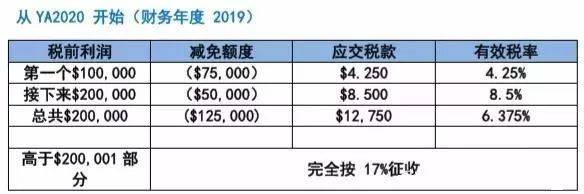 目前,新加坡自2020年开始及2019年后成立且符合相关规定的企业,首个三年应税所得中,拥有税收减免计划,首10万新币应税利润可享有75%的税收减免,税率是4.25% ;高于20万新币的部分按标准的17%的税率计算。第二个10万新币应税利润可享有50%的税收减免,税率为8.5%。