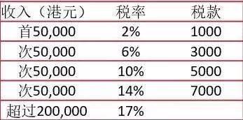 香港的个人所得税称为薪俸税,纳税人是在香港任职、受雇而取得所得的个人。2018/19课税年度及其后(2018年4月1日及2019年3月31日)税率为: