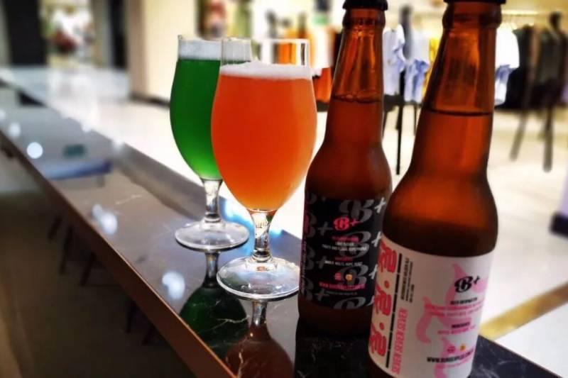 店里还有两款独家调制的鸡尾啤酒。分别用了红酵母和蝴蝶豆荚的原料,鲜艳的色彩,很是撩人。