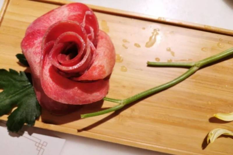 一朵玫瑰的造型,将吃火锅从下里巴人上升到阳春白雪。