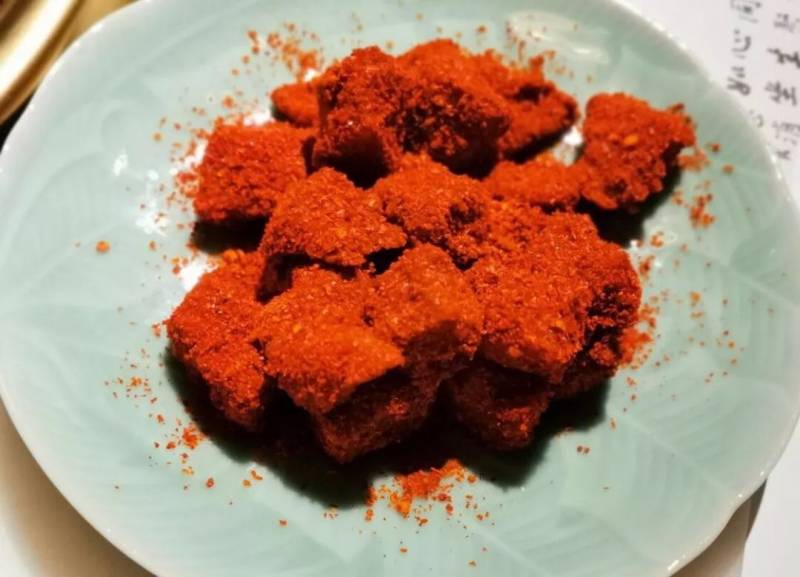 来自美国的肥牛,切成大块用辣椒粉腌制,很入味。