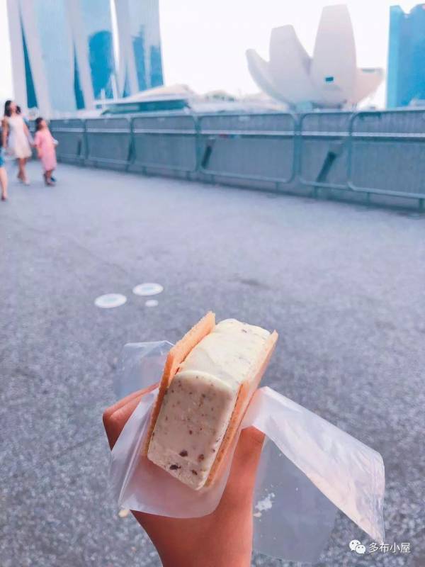 老爷爷的冰淇淋小摊,在滨海湾螺旋桥那里,可以选择用面包或威化夹冰淇淋。