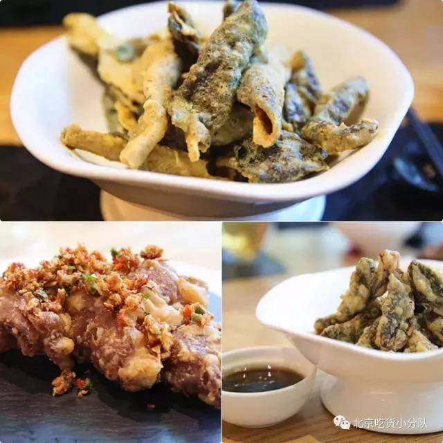 还有特色炸鱼皮、炸猪蹄和炸皮蛋都值得一试,尤其是用咸蛋黄炸的三文鱼皮,趁热吃特别香脆。