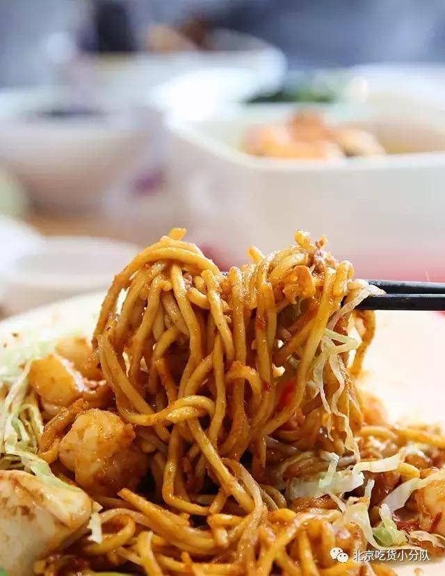 新加坡大排档的经典小吃,用的是油面加海鲜蔬菜大火猛炒,吃之前挤点儿青柠提鲜,油面吃起来很Q弹。