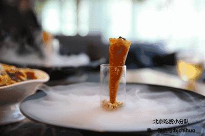 上来是一个仙气飘飘的液氮大冰球,不要顾及隔壁桌的眼光,请大力"砰"的一下敲碎它才有得吃,很有参与感哦。