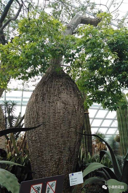 (酒瓶状的树干内,都是满满的水分和养分哦。所以在这里给大家一个小知识,凡是此类树形的植物我们在浇水的时候一定不能过于频繁了,例如发财树。)