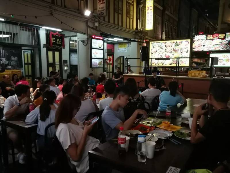 牛车水是当地的唐人街,华人聚集地。从克拉码头过去并不远,一下车就看到有人在跳“广场舞”,只不过他们跳的是尊巴和恰恰。街道两旁都是中文繁体字,有老北京炸酱面,有重庆火锅,还有成都的串串。店铺里里的东西有点国内小商品批发市场。这边的华人大多数都是福建过来的移民,一代代在这儿生存下来。不过他们还保留很多中国文化的传统,说中文,看中文电视,听中文歌,和华人生活在一起。