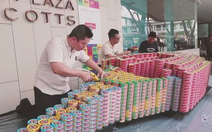 创下罐头砌成的最大型跑车的新加坡纪录。