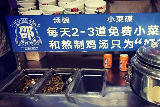 为了照顾到四川人的口味喜好,店里还配了咸菜和酸菜,下饭很棒!还有免费供给的鸡汤,应该是鸡骨架熬出来的,味道不错,而且滋补。比起四川人爱吃的火锅和串串,这简直就是既美味又“养生续命”啊!