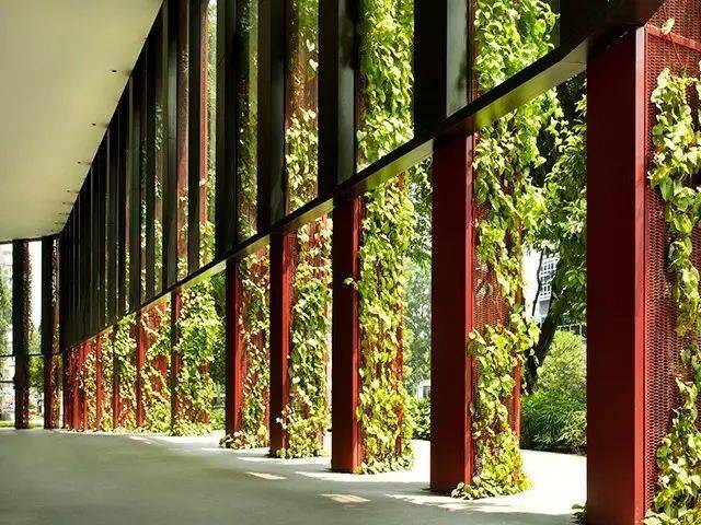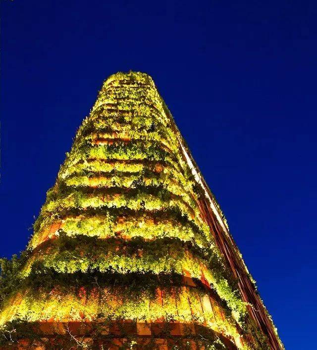 绿色塔楼也是鸟类和动物的避风港,塔楼红色铝网包裹层被设计为一个拥有21种不同的爬藤的背景墙,五颜六色的花朵穿插在绿叶之间,为鸟和昆虫提供食物。 爬藤以马赛克形式排列,每种类型均可获得其最适合的光照,阴影和通风。塔楼的屋顶不是平屋顶,而是一座热带凉亭,充满花卉,多样,舒适和生机。