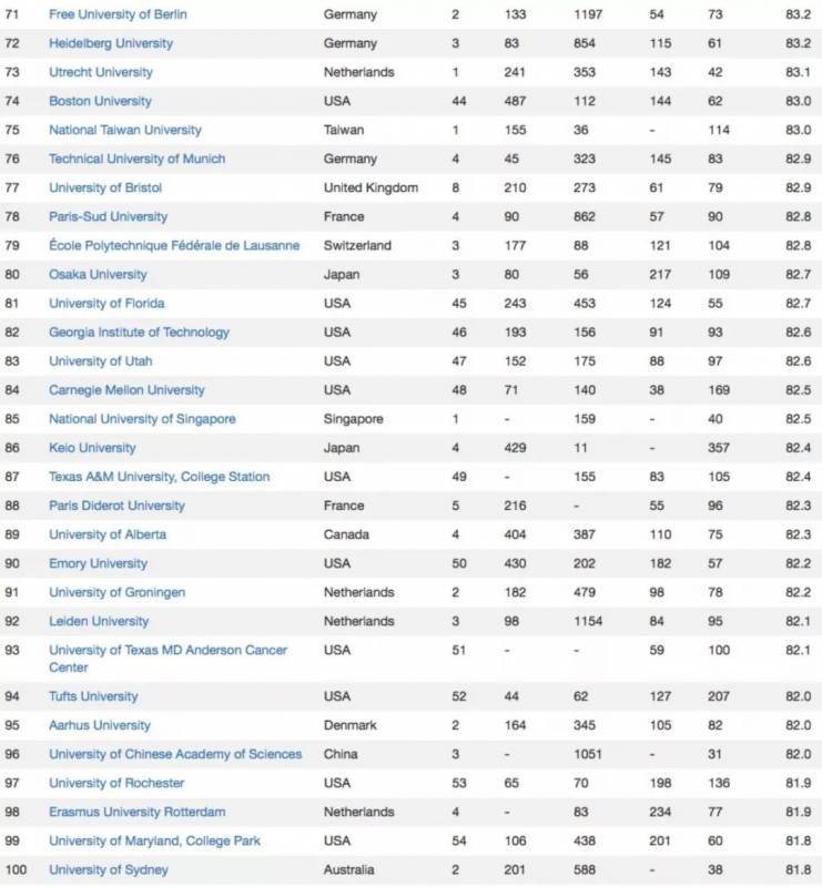 这次的排名可是囊括了全世界99个国家,两万多所大学,可心率可以想见!