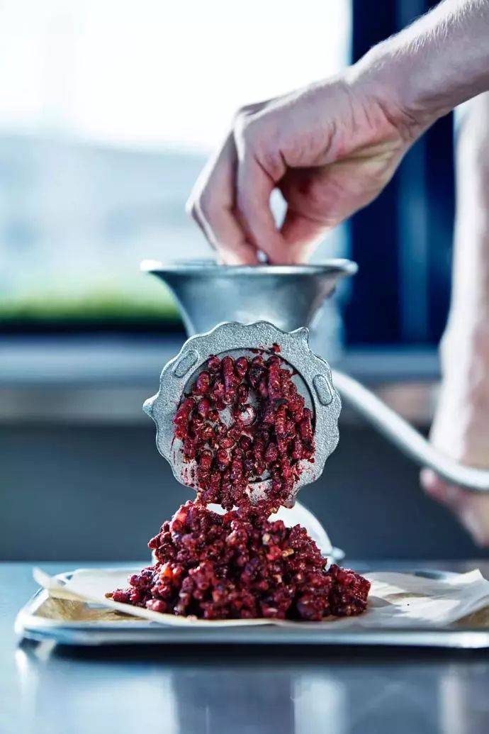 放进绞肉机里搅拌压制