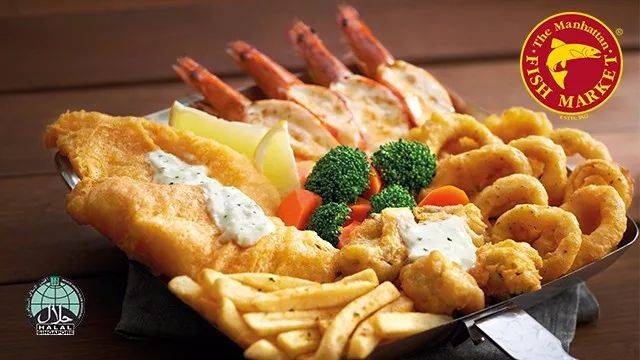 Mahattan Fish n’ Chips, Coastle Baked Seafood, Grilled Glory Dory, Mahattan Flaming Prawns, Mahattan Flaming Seafood Platter