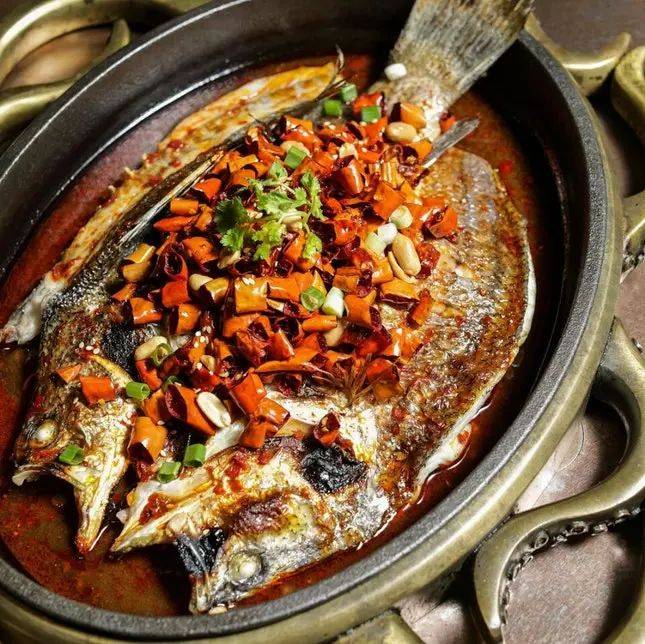 招牌菜:蜀江烤鱼,麻辣口味的香辣味酱