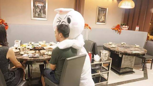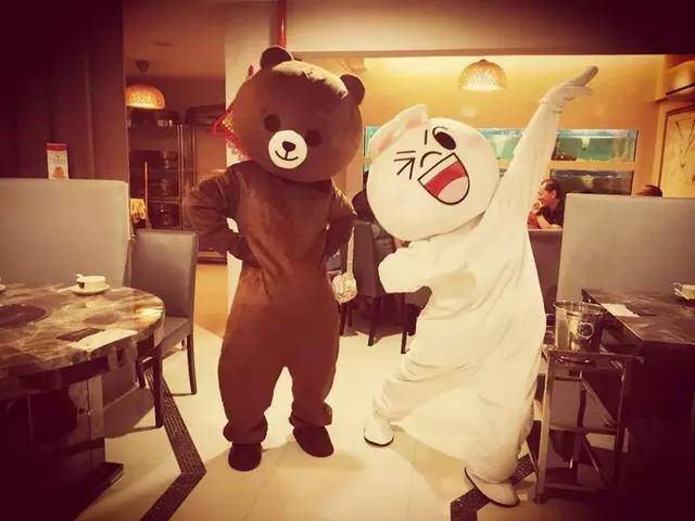 老板这么怪,店员们当然也不能落后呀,一个个穿着火遍日本的布朗尼熊和可妮兔的玩偶服,在店里又唱又跳。