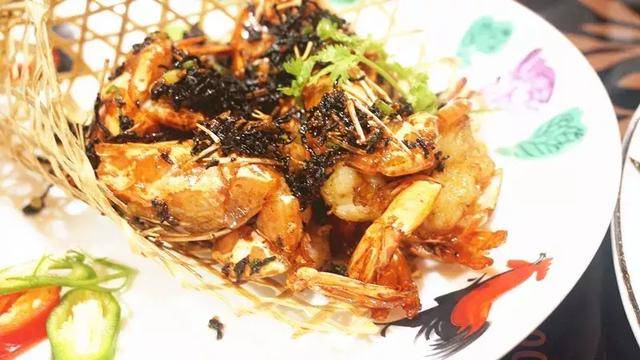 除了上面的河塘虾,店里还有一道虾的拿手料理--茶叶虾。一听名字就觉得新奇,难道是用茶水煮虾吗?图样图森破,老板可是用特选普洱茶叶来爆炒大虾。