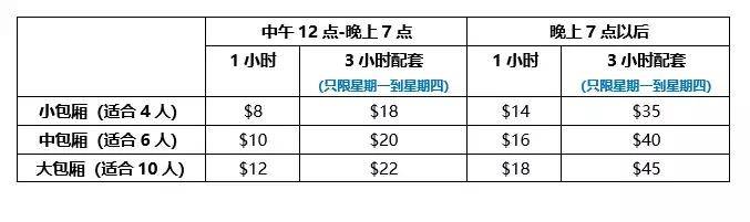 价格(按包厢收费):
