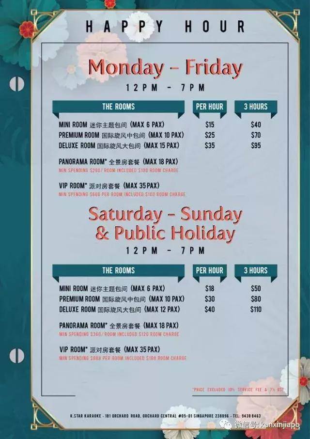 欢唱时间(中午12点至晚7点):