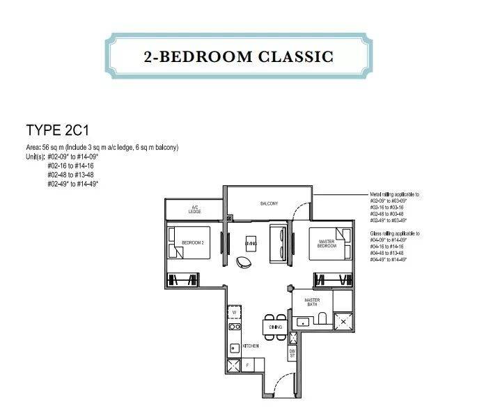 二卧室,套内面积56平方米(609平方尺)至70平方米(756平方尺),整套售价从S$120多万新元起。